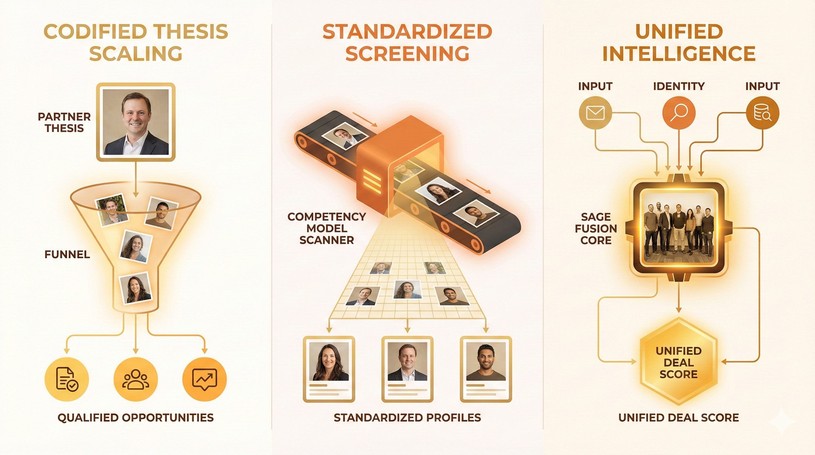 Institutional Thesis: SAGE evaluates every deck using the firm's specific expertise, effectively allowing the Partner's logic and knowledge to scale to every screen.